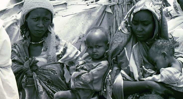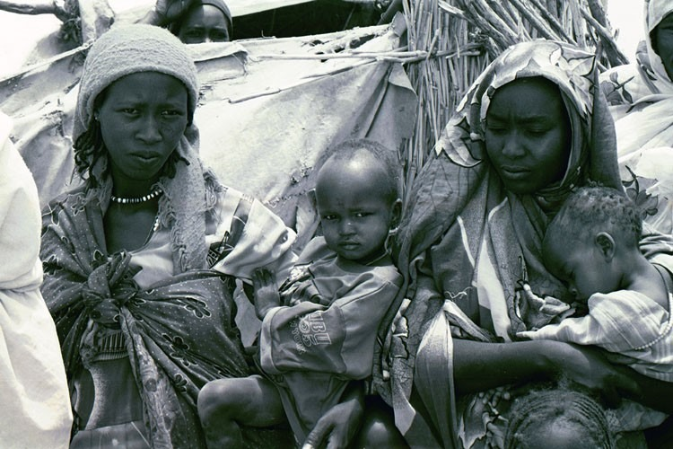 Refugees in a camp in eastern Chad, intended for refugees from the Darfur region of Sudan. Jerry Fowler visited the site in May 2004 to hear the refugees' accounts of the genocidal violence they suffer. US Holocaust Memorial Museum/Jerry Fowler