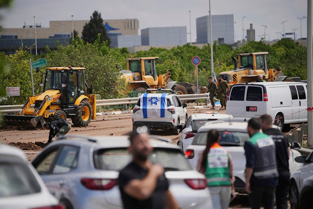 Forças israelenses inspecionam o local onde um projétil disparado pelas Forças Armadas do Iêmen caiu na área do Aeroporto Internacional Ben Gurion, perto de Tel Aviv, Palestina ocupada, no domingo, 4 de maio de 2025. (AP)