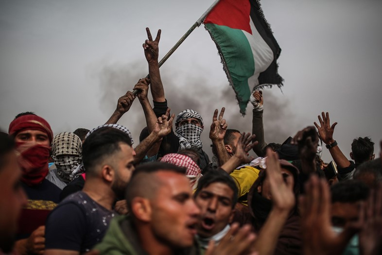Em uma mão ele segura a bandeira Palestina e na outra, um estilingue. Ele usa uma expressão de determinação enquanto a fumaça se espalha ao fundo. Aed Abu Amro tinha apenas 20 anos quando o fotojornalista Mustafa Hassona capturou esta imagem poderosa dele, durante um protesto violento em Gaza em 22 de outubro de 2018.