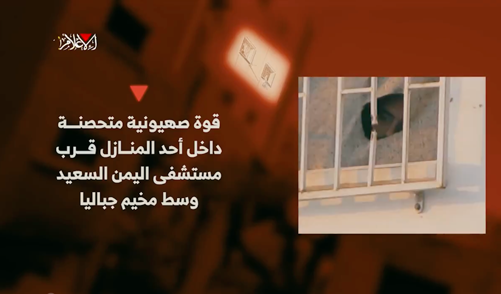 As Brigadas al-Qassam mostram um soldado israelense de uma força de infantaria se escondendo em uma casa no campo de refugiados de Jabalia, momentos antes de ser eliminado, em 13 de novembro de 2024 (Mídia Militar)