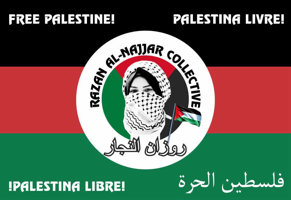 The struggle for freedom, justice, and human dignity knows no borders. The Razan Al-Najjar Collective is an inclusive space that welcomes all those who identify with the Palestinian cause and the cause of human rights more broadly. We are united by the conviction that, just as Razan Al-Najjar demonstrated, each act of solidarity and resistance builds a path towards liberation. Our mission, therefore, is to follow in Razan’s footsteps, inspiring action, resistance, and hope for all who face oppression and injustice.